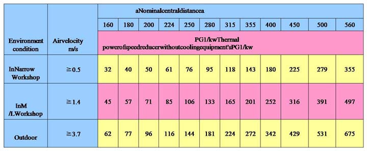 Note: The thermal power PG2 of speed reducer attached with cooling pipe can be designed as request.