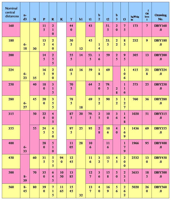 3.1.1 DBY type is the secondary rotating hard surface gear reducer, DCY type is third rotating hard surface gear reducer, and the secondary and third rotating is involutes cylinder helical gear.